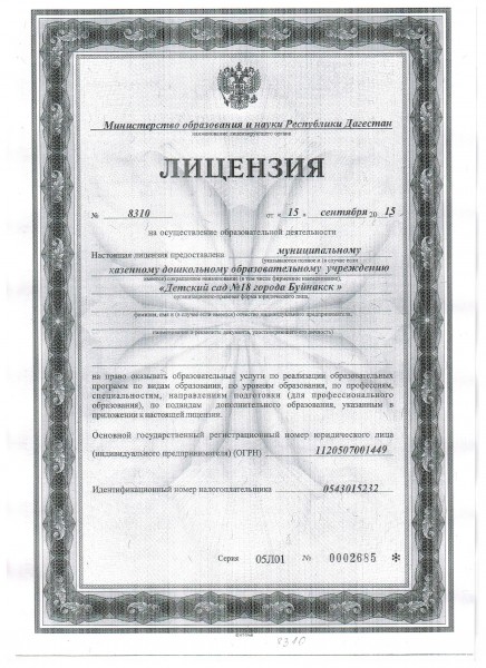 | Полное наименование образовательной организации* | Муниципальное казенное дошкольное образовательное учреждение "Детский сад №18 города Буйнакска" |